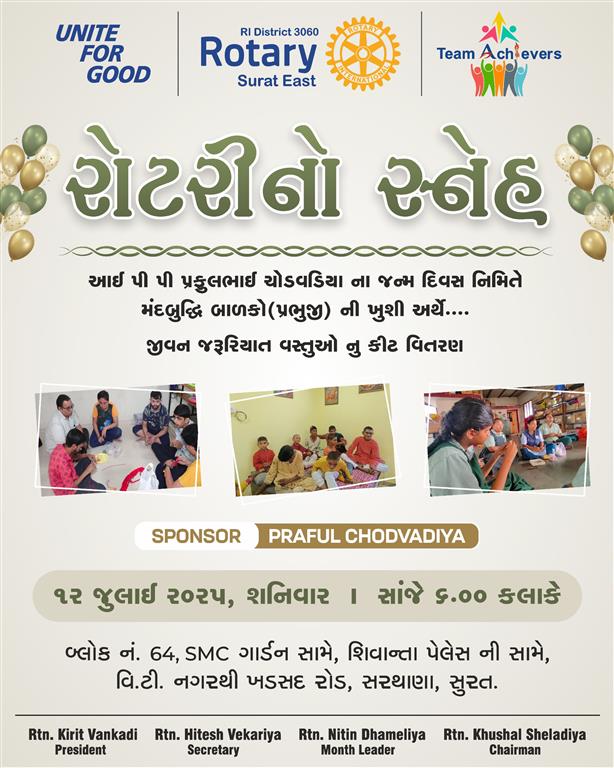 The Rotary Club of Surat East is proud to announce a significant tr. . .